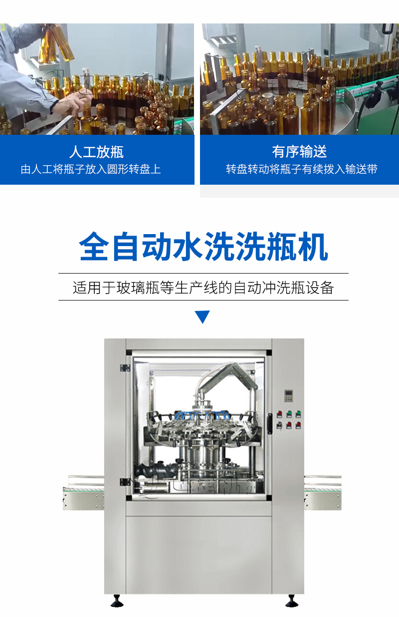 全自动洗瓶机是一种适用于玻璃瓶等生产线的自动冲洗瓶设备。该机设计合理,结构严谨,封闭式生产确保生产过程中不受污染。在消化吸收意大利先进技术的基础上,精心研制而成。