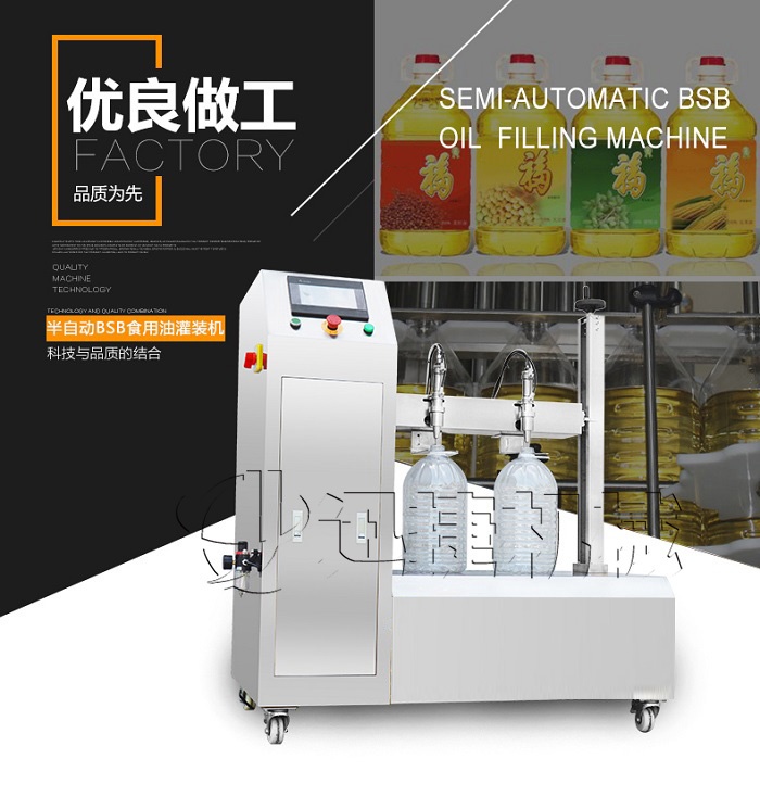 半自动食用油灌装机其外形大气稳重,颇有档次感!整体框架厚重结实,可以承受设备长年使用不变形,灌装区为开放式式灌装设计拿取方便,外观大气整洁,同时具有防尘功能,更符合食品卫生规范。能耗上,其能耗非常小功率在0.75KW,都拥有着非常不错的耗电经济性。外观上,周身银装素裹分外妖娆。特的自动夹瓶系统可以精确定位排列不一致的油瓶,保证灌装时油嘴跟瓶口位置一致营造出一种非凡的科技氛围。灌装时油嘴无插入瓶体的升降动作,将优雅与灵动之美很好的诠释一番,气缸动作少在延长其使用寿命的同时也节省灌装时间。采用立研发的一头一泵灌装方式,一个油嘴对应一个计量泵,可以有效提高灌装稳定性及精度,也方便维修,变频器调节双速灌装不溢油,灌装完毕自动回吸不滴油轻轻松松就能做到零滴漏。整体造型采用了四轮四角的布局采用了四边形凹型设计,区别于老款正方形设计显得空间更大,更节约生产成本,古代锁型设计搭配底部星空(中国)一站式服务平台四个大字看上去十分个性,炯炯有神像一个威武的将军。机身侧面输油管(输油管均为304不锈钢波纹管,杜绝传统塑胶钢丝管带来的塑化剂问题,保证油品安全)链接储油箱管道与物料浑然一体也为这个“大块头”增加了不少的灵动感。半自动食用油灌装机自身有配方功能,可以存储10种不同规格的油桶参数,换规格灌装一键设定,操作简单快捷更为自己提升了一个档次。